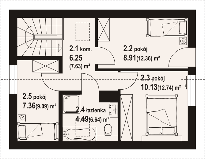 | 2.4 łazienka | 4,49 (6,64) m² |
