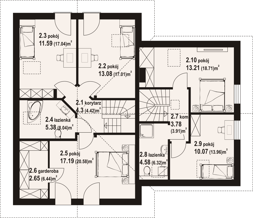 | 2.2 pokój | 13,08 (17,01) m² |