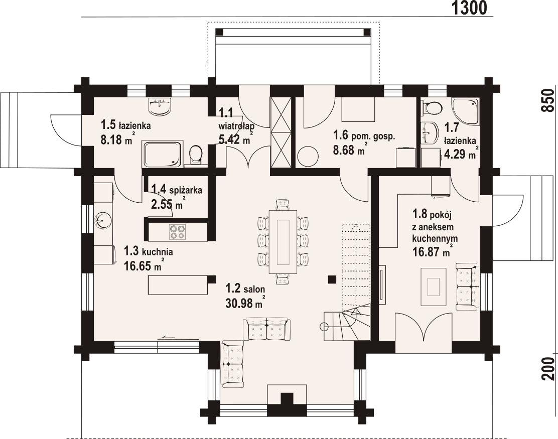 | 1.3 kuchnia | 16,65 m² |