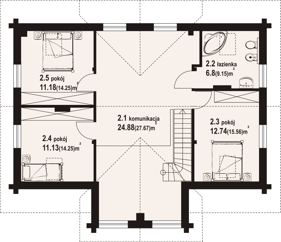 | 2.1 komunikacja | 24,88 (27,67) m² |